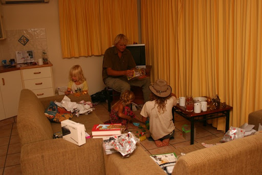The girls where just watching a movie (it rained- a good sign) when there was a loud banging on the windows. We where very frightened and hardly dared to open the windows and doors (but of course we did open them), but saw nothing, until we opened he front door. A bag of presents! The grils laughed that Sinterklaas, or Zwarte Piet used a garbage bag in Australia. but soon they where opening presents, while letting their hot chocolate grow cold.