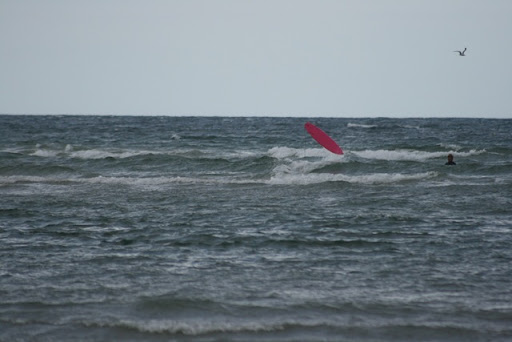 De volgende dag het echte werk; We krijgen surfles van Andrew, die vol goede moed begint, maar wel snel een beetje verward raakt van ons rare gezin. Diuwke, die zomaar op het bord springt en wegsurft, maar het na een uur op zee voor gezien houdt (en wat is de kust dan ver weg, en Diuwke klein), Tjits die vastbesloten is, maar geen bal begrijpt van de engelse instructies, Ik die na een uur vertalen nou ook wel eens een golf wil volgen, en Breg die met bandjes vol de golven induikt (tussen de kitesurfers), terwijl die natuurlijk gewoon rustig zandkastelen moet bouwen. Art zit maar te wachten aan de kant (hij is eerst nanny) maar als we dan eindelijk wisselen, staat hij gewoon op het bord, en surft weg. Niet leuk, volgens Andrew, wat heb je nou aan iemand die het gelijk kan? kitesurfing, without the kite...and surfer.