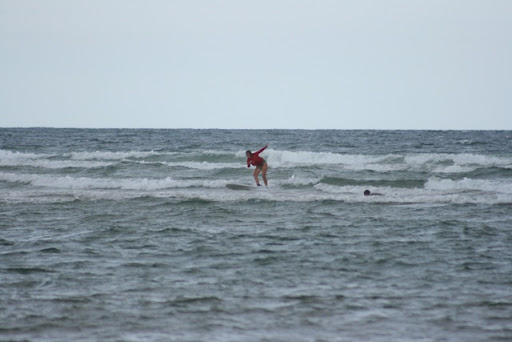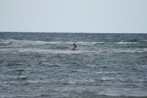 We start the first day, with a boogeyboard but Tjits and Diuwke get stung by a stinger, a bluebottle, and the imprint of the tentacle stand out on Diuwkes face right across her eye and nose. (she's been luckey that she didn't had her eye open). The lifeguard eased the pain with a bag of ice.