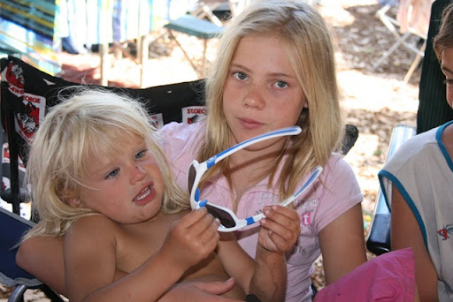 Met de andere stellen was het ook leuk, en van de oppervlakkigheid van de Australiers hebben wij niks gemerkt. Alleen oud jaar was wel erg anders dan wij kennen; 6 uur eten, snel kampvuur met marsmellows, 9 uur kinderen in bed, 10 de volwassenen. Daar stonden we dan met onze champagne, de knallers en de sterretjes... Gelukkig nieuwjaar!! Met een stuk of vijf man (inclusief ons) stonden we nog heel even naar elkaar te kijken op 1 januari, maar voordat het nieuwe jaar een half uur oud was, lagen we in bed.
