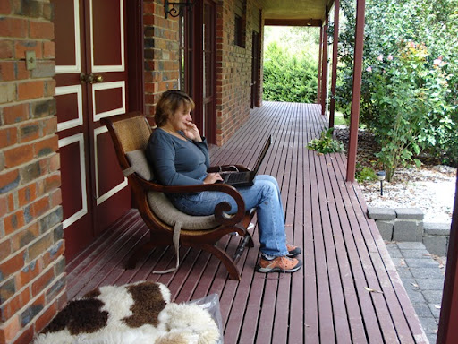 Maandag kan ik ineens niet echt meer lopen, het zat er al even aan te komen, dus we doen weinig, en ik bezoek de plaatselijke fysio. Gelukkig is de Melbourne fysio opleiding supergoed (dat hadden we van te voren wel uitgezocht, natuurlijk) dus dinsdag loop ik weer rond, en rijd voor het eerst weer op een paard, onder leiding van Yvonne, die toevallig een 'builder' als man heeft, die misschien wel een onderzoekje wil doen naar het huis dat we leuk vinden, want we blijven er maar aan denken, en het huis dat we vandaag zagen was verschrikkelijk!
