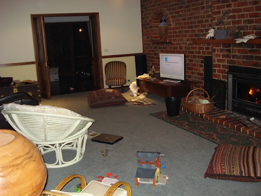 Wij zijn inmiddels over naar ons huurhuis, en natuurlijk regende het zowel woensdag (tassen en koffers verhuizen) als vrijdag (de container!) pijpestelen. De eerste dagen was nog een beetje kamperen, want tot nu toe hadden we, als we een huis hadden, allerlei spullen , maar nu helemaal niks! Dat was even wennen, en de moed zakte ons een beetje in de schoenen, toen forty winks wel onze matras bracht (op de afgesproken dag!!), maar geen 'loanbase' (om die dure matras op te leggen), en Tjits matras waren ze helemaal vergeten... Hoe moest die nu slapen? Gelukkig hadden we ons verrekend in de matrassen die voor de dames kochten, en hadden we er drie (twee, drie... moeilijk hoor). Harvey Norman kwam ook redelijk op tijd (tegen vijven), met eindeloos veel dozen vol verrassingen voor de kinderen, met bijgeleverd gereedschap. Art kon dus gelijk aan de slag.