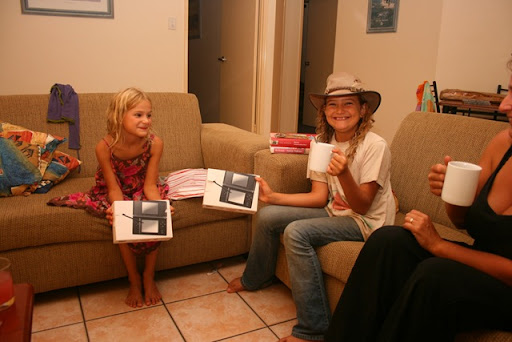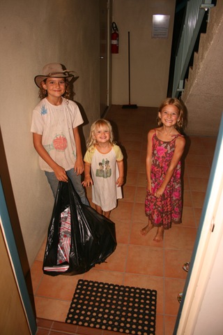 The girls where just watching a movie (it rained- a good sign) when there was a loud banging on the windows. We where very frightened and hardly dared to open the windows and doors (but of course we did open them), but saw nothing, until we opened he front door. A bag of presents! The grils laughed that Sinterklaas, or Zwarte Piet used a garbage bag in Australia. but soon they where opening presents, while letting their hot chocolate grow cold.