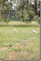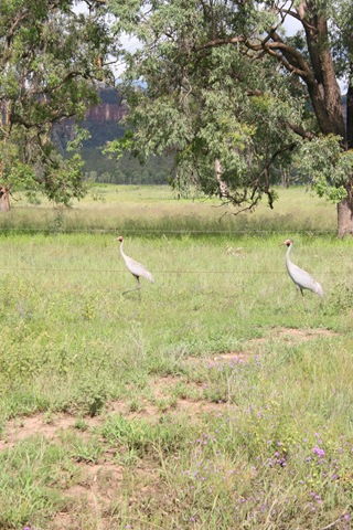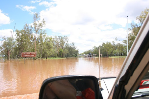 Vanwege overmatige regenval was de weg naar Carnarvaron dicht, wisten we, maar voor de zekerheid vroegen we het zondag nog even bij de info. Gelukkig open; het water was uit de Gorge weg, en de wegen in het park weer open. Alle kampeerders waren direct weggevlucht (die hadden vier dagen vast gezeten), dus het ideale moment voor ons om te gaan (lekker 4WDen!) Brolga's