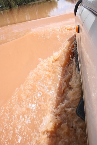 Carnarvon gorge had been closed due to excessive rain the past days, but we where lucky; Sunday morning the roads in the park opened again, and we took the chance to drive upstream the fleeing campers. small river, right?