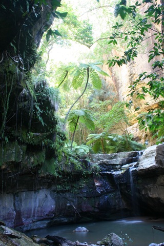 maar werden beloond met een prachtig stil plekje met waterval en veel mos, dat op de stenen groeit. Carnarvon Gorge is prachtig. Zeker een plek om terug te gaan als we kinderen hebben die verder kunnen lopen. Je kunt hier 10km ver, enkele reis.