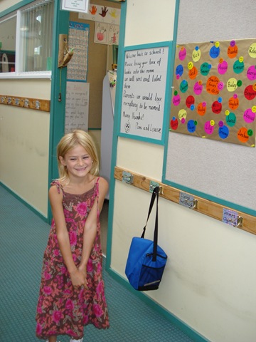 Racen terug naar school, waar we natuurlijk te laat aankomen (zie je wel, de oude routine doet zijn intrede) en snel pikken we de meiden op. Diuwke heeft een leuke dag gehad, en Tjits een SUPERdag! Ze heeft twee vrienden, en zit vol verhalen. Het is nog steeds een beetje koud, dus halen we in de dorps-kleding winkel lekker lange zwarte niet-uniform broeken. En een T-shirt met een ratelslang erop, voor als het gele uit mag- na school. Een voordeel van een uniform; het nieuwe shirt blijft vast een hele week schoon.