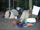 Lenea en Thala hadden al de hele ochtend naar ons uitgekeken, bleek, dus toen ze ons plotseling aan het water zagen staan, geloofde niemand hen. Maar uiteindelijk kwam het toch nog goed, en zette wij onze mini-tentjes op in een echt australisch tentenkamp; met grote tarps overal over heen, en per keuken minimaal 3 tafels, want waar maak je anders je healthy gourmet meals op?