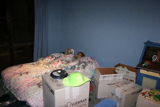 De meiden vinden het heerlijk dat de spullen er weer zijn, en de dozen met 'toys' erop geschreven zijn snel geopend, en de inhoud verspreid over twee slaapkamers, en de study, die lekker leeg is (tot de meiden dat ontdekken, dus) Iedereen slaapt heerlijk die nacht, en morgen gaan we uitpakken.