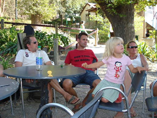 Maandag kan ik ineens niet echt meer lopen, het zat er al even aan te komen, dus we doen weinig, en ik bezoek de plaatselijke fysio. Gelukkig is de Melbourne fysio opleiding supergoed (dat hadden we van te voren wel uitgezocht, natuurlijk) dus dinsdag loop ik weer rond, en rijd voor het eerst weer op een paard, onder leiding van Yvonne, die toevallig een 'builder' als man heeft, die misschien wel een onderzoekje wil doen naar het huis dat we leuk vinden, want we blijven er maar aan denken, en het huis dat we vandaag zagen was verschrikkelijk!