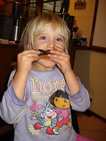Bregje is vrijdag de 8e voor het eerst de hele dag naar de daycare gegaan. Ze doet het wel goed, maar 'al die engelse kinderen moeten weg!' Ze heeft een vriendin; Nardine, de juf. Vandaag had ze het wat zwaarder, en ik hoop dat ze gauw wat meer haar draai vindt.